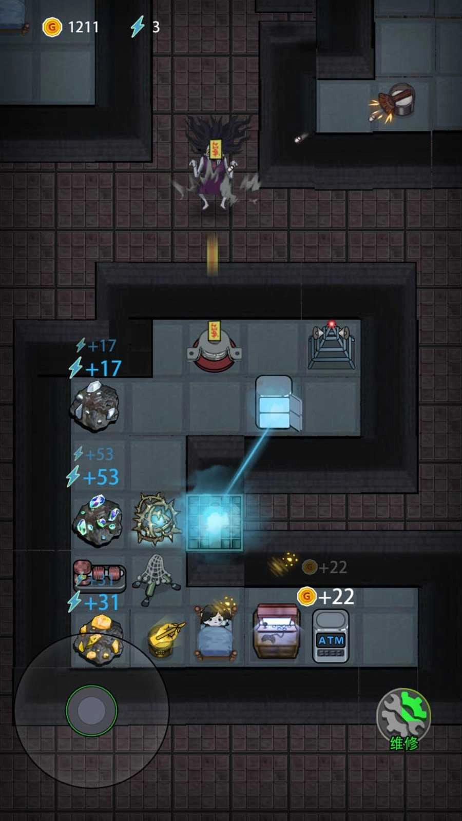 在充满回忆的校园宿舍场景中,玩家需要搭建防御工事抵御源源不断的僵尸入侵,游戏采用暗黑美术风格,营造出沉浸式的紧张氛围。