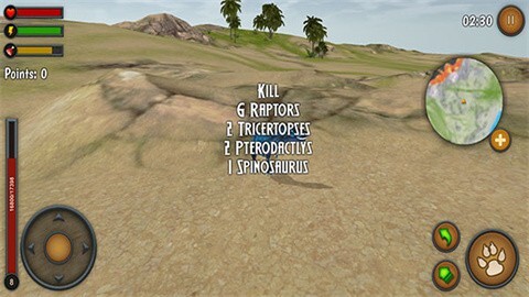 在这款以史前巨兽为主题的模拟游戏里,你将化身顶级掠食者,在危机四伏的恐龙世界中体验弱肉强食的生存法则。通过虚拟摇杆操控巨兽的行动轨迹,利用右侧的环境侦测界面掌握周边生物动态,在与其他史前生物的对抗中不断强化自身,最终找到属于自己的生存策略。游戏的写实画风与沉浸式玩法,让你仿佛真正置身于那个充满野性与挑战的远古时代。