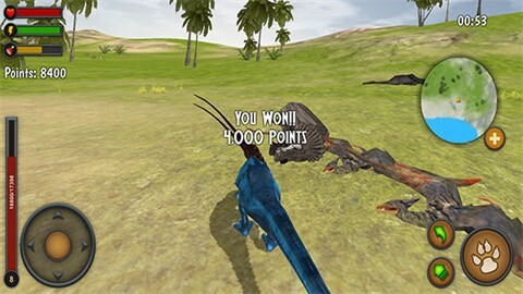 屏幕左上方显示着你的生命数值,进食时需留意周围的恐龙,它们的外观都高度复刻了真实的形态。