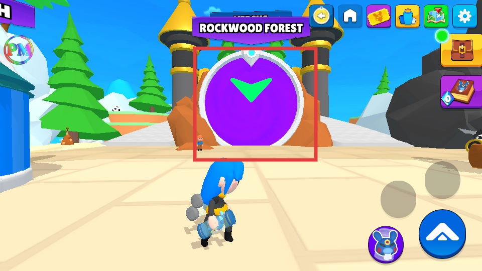 点击那扇紫色的传送门,就能进入Rockwood-Forest区域,开启属于你的冒险之旅。