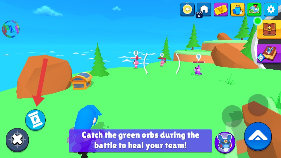 你可以利用左下角的技能按钮(例如闪电技能),来辅助捕捉怪物。