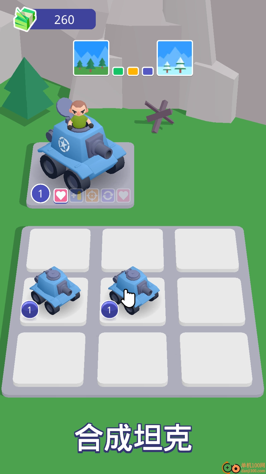 通过合成不同等级的坦克来实现攻击力提升,这是一种简单的坦克升级方法。