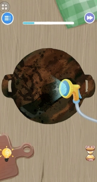 玩家借助手指滑动来模拟真实的清洁操作,用海绵擦拭液体污渍,再用铲刀清理固体结块,不同工具对应着特定的手势要求。