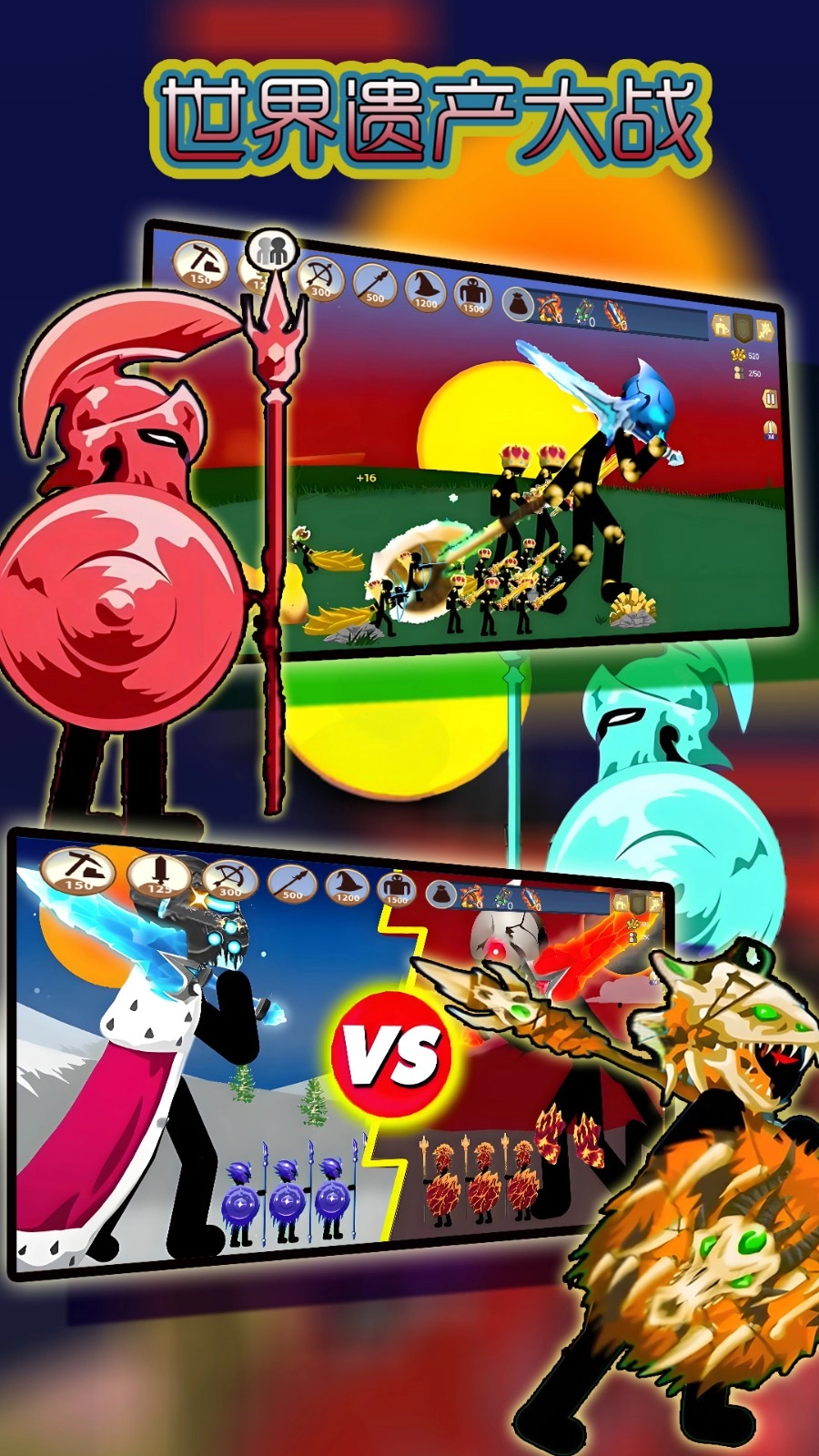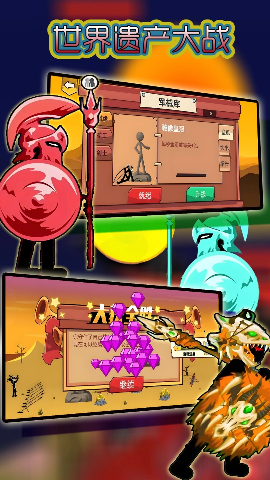 世界遗产大战是一款十分有趣的火柴人策略游戏,玩家将开启一场激情四溢的战争。在游戏中,你需要精心部署自己的阵容,为士兵们合理搭配盾牌与武器,以迎战敌方部队。发挥你的战略眼光,成功击败对手并获取战利品,就能持续提升自身整体的作战能力!