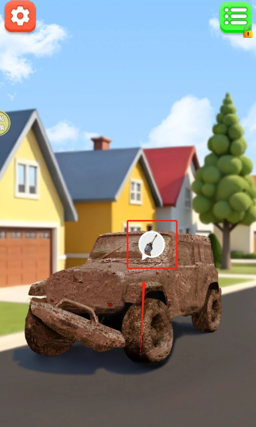 3、点击红色框框那个图标给汽车洗车。