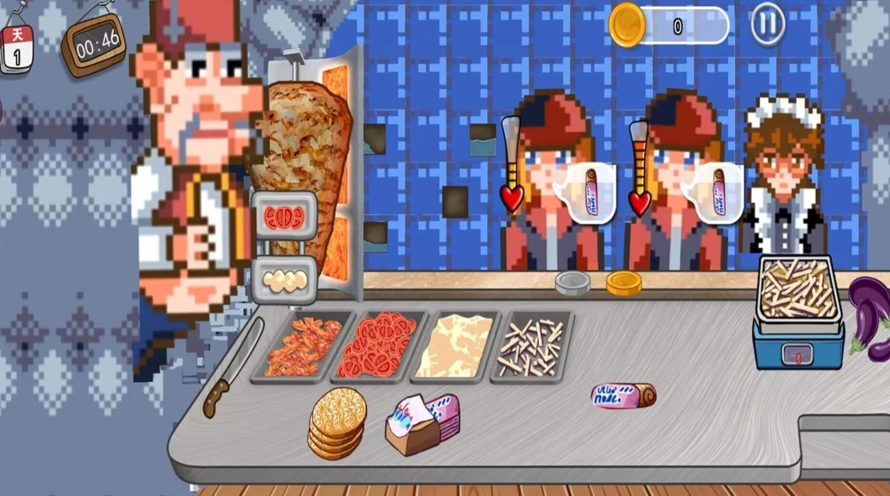 《美食大挑战》是一款像素风格的模拟经营类店铺小游戏,玩家将通过经营一家沙威卷饼店、制作各类卷饼来推进游戏进程,快来一起体验当美食家的乐趣吧!