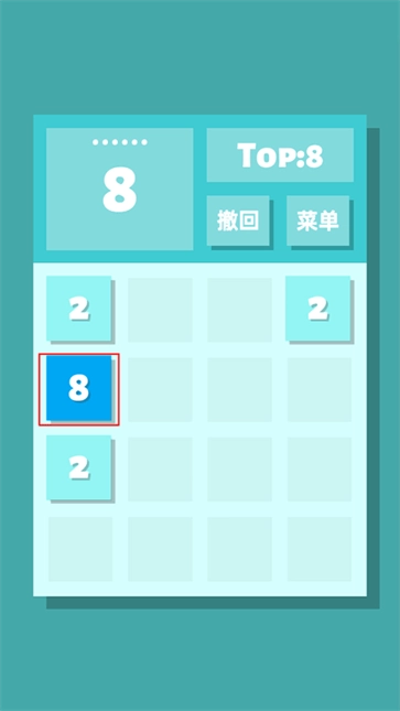 4、我们顺利把两个4合并成了更大的数字8,依照这样的思路接着合成更大的数字就行。