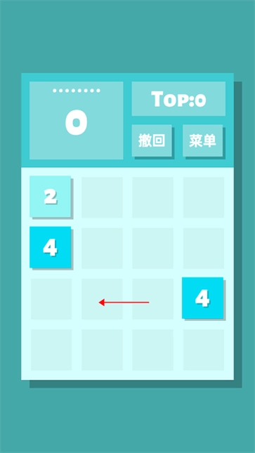 2、现在能看到出现了两个4,我们往向左滑动屏幕。