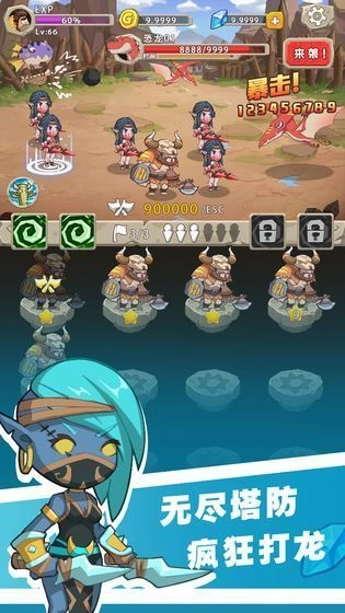 《全民打恐龙》是一个以原始人与恐龙战斗的合成挂机游戏。有崇拜火焰的火族有崇拜森林的精灵族有崇拜野兽的兽族有崇拜死亡的神秘亡灵族。四个来自不同领域的原始种族为了对抗凶残的恐龙而联合起来虽然来自不同的种族但是为了同一个目标他们还是齐心协力联手一起加入这场无尽的战斗全民打恐龙!