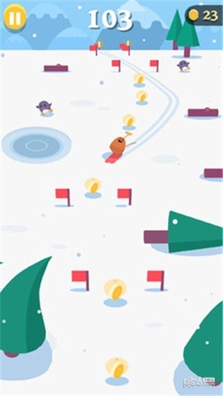 点击左右移动,点击并按住可更快的滑雪,标志之间滑雪获得奖励积分!