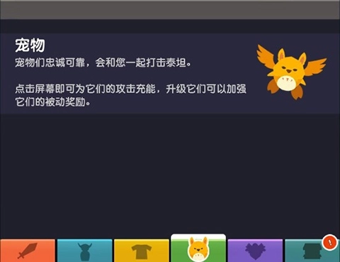 点按屏幕上的按钮就能给宠物充能,充能结束后它们会对泰坦造成巨额伤害。游戏过程中你会时不时得到宠物蛋,一定要好好利用它们哦!