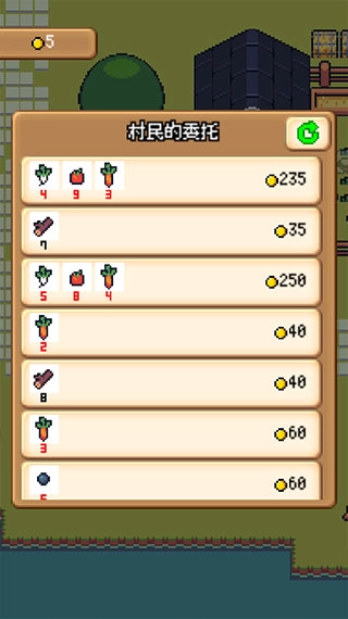 6、木材:木材和水果岩石:石头领域:作物绵羊:羊毛牛:牛奶矿石:铜,银灌木:金钱即使您砍伐树木或压碎岩石,树木或岩石也会随着时间恢复。让我们在高效地环岛游动的同时收集材料。村民的要求当您提出请求时,他们将用收集的材料换钱。Oisogi的要求很高,因为奖励加倍!每隔几分钟就会添加请求,而较旧的请求将被删除。