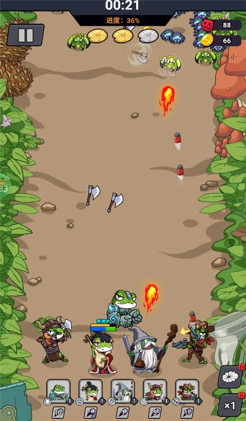 1、游戏中能够挑选不同的青蛙,以多样的策略进行摆放,从而完成相关战斗。