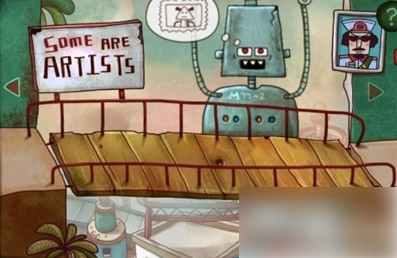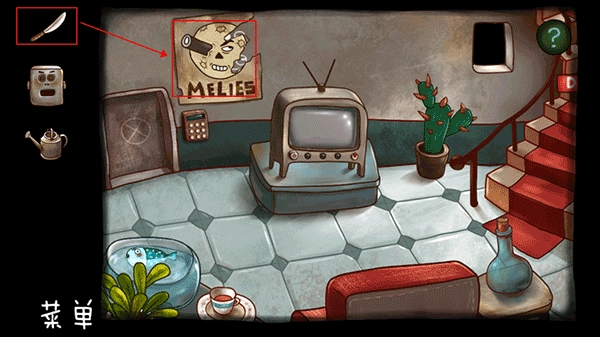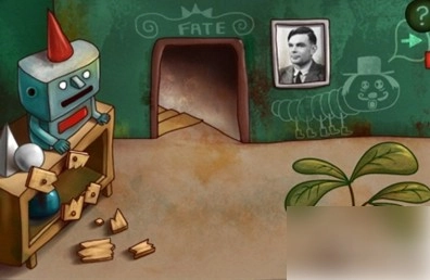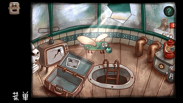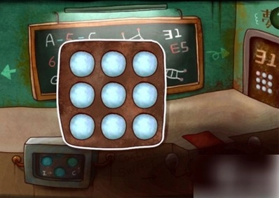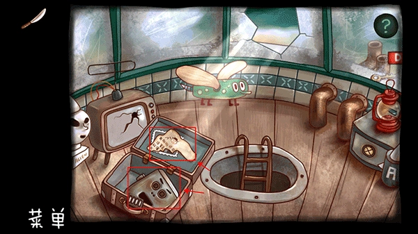 先捡起地上的锤子与纸张,显微镜里的细菌会依照地上图纸的样式排列(主页有相关视频)。操作时先把中间五个细菌排好,再对两边的细菌进行上下调整,接着往上一行操作。之后捡起碎片,用锤子砸向机器人下方的箱子,就能得到罐子。