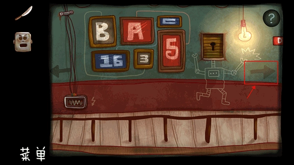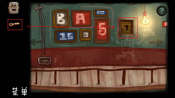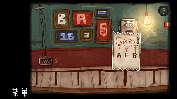 回到楼上的走廊,通过观察走廊墙壁上字母与数字之间的连线,我们可以得出:A对应的数字是5,B对应的数字是3,C对应的数字是16。那么E就等于A加C,也就是5加16等于21。机器人给我们的纸条上标明了密码的排列顺序是AEB,所以密码就是5213。