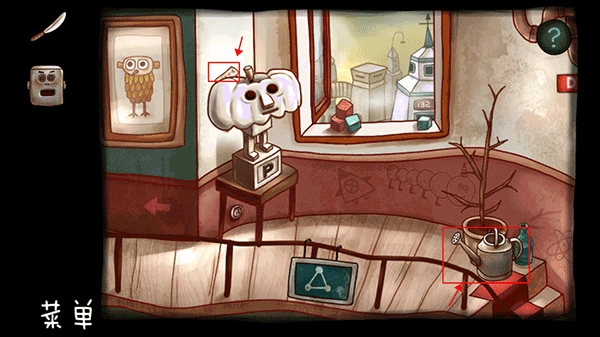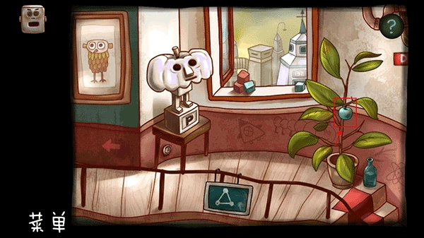 在右侧墙壁上找到照片,把照片里的旋钮取下来,交给左边的机器人,就能获得图谱;接着把药水拿给博士,会得到一朵花;最后点击已经摘下面具的博士,就能拿到红蓝药丸。