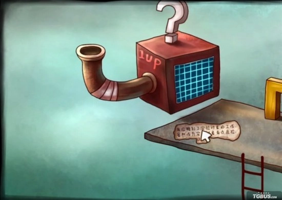 顺着梯子往上爬,又瞧见一台机器上标着1UP。把刚才拿到的1UP放进机器里,就会掉出一个蘑菇(这莫不是超级玛丽?),捡起地上的笔记碎片后往右边走。