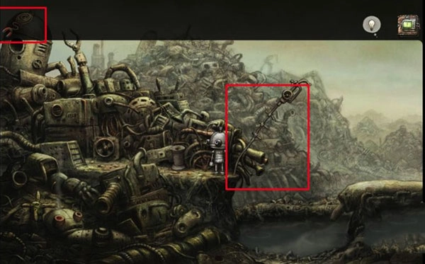 4、点击磁铁以及线圈上缠绕的绳索,能收集到两个道具。点击最后一根竖直的管道,机器人就会把它压弯;