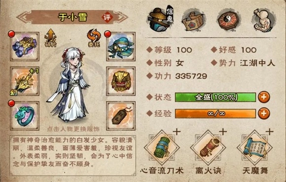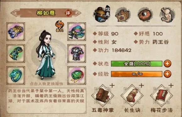 柳如意的特性为:疗伤类招式每回合的气血恢复量提升25%,同时拥有25%的几率免疫负面状态。她可胜任边路副T的角色,整体性价比颇为可观。