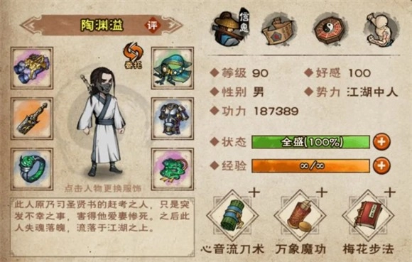 陶渊溢:作为根骨10点、自带4点免伤与9%防御属性的随从,天赋升级后搭配鬼面,能让对手前两回合的命中降低4%、攻击减少3%。若不考虑用元宝购买随从充当前排,他无疑是前排位置的上佳之选。