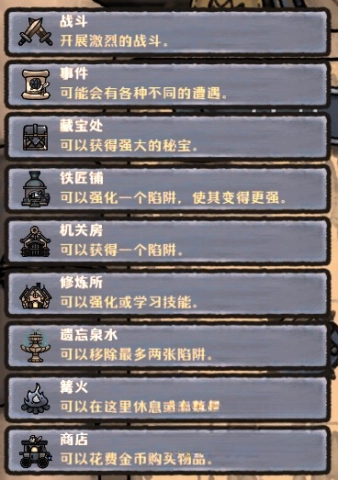 游戏地图运用多分支路线的设计,玩家能够依据自身需求挑选触发不一样的事件,事件的类型涵盖: