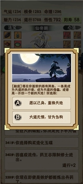 玩家能够自定义人物的属性数值,不同的设定选择,会对后续的修仙历程产生影响!