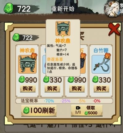 游戏过程中会随机刷新商店,修仙者们可用收集到的灵玉兑换法宝,这些法宝对修行精进与属性提升大有帮助,能直接增强修仙者的实力!