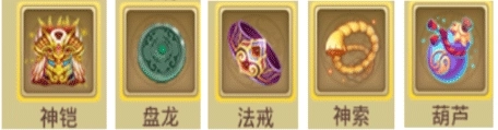 被动神器:1:法戒、霞衣、盘龙;2:神索、葫芦、法戒;