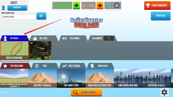 2、点击图中所示位置,即可创建新的过山车。