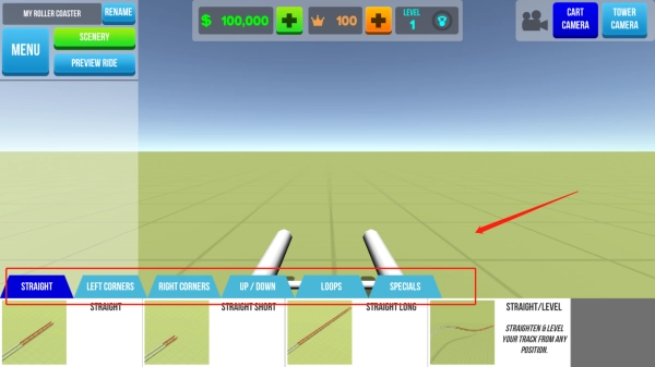 3、下方为过山车的轨道,可自由选择。