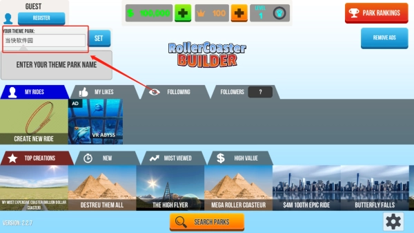 1. 进入游戏后,在界面右上方能够为自己的游乐场进行命名选择。