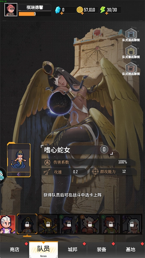 1、踏入游戏,点击选取一个技能或者队员,助力你战胜气势汹汹的怪物。