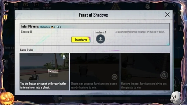 开启功能后,所有特种兵都将默认以猎人的身份参与这场盛宴。猎人需要留意并警惕藏在家具中的幽灵,并且要找出这些幽灵并将它们驱赶出去,通过这样的方式来获取搜寻积分!