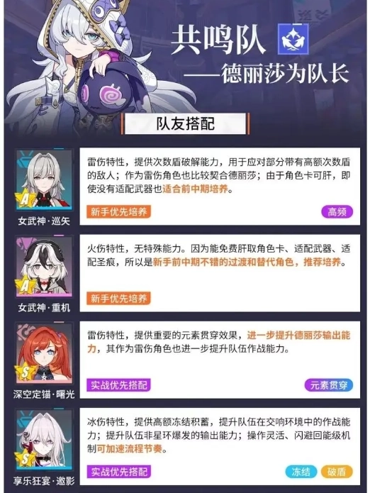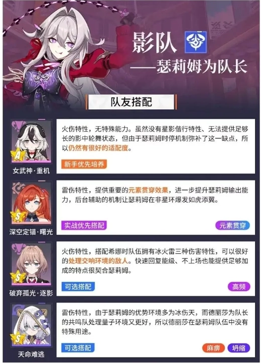 3、玩家能够组建三人小队,依据敌人的属性来搭配,这些属性包括物理、火焰、雷电、冰、量子、虚数以及星尘。