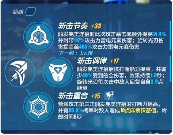 所以深红的攻击最好把控好节奏,等身上的光圈重合时再按下攻击键,每次普通攻击之间大概间隔一秒左右;要是看不清光圈的话也没关系,可以留意音效——触发完美连招时会有特殊的音效提示,千万不要一直按住攻击键不放。而完美连招能带来的效果有以下这些: