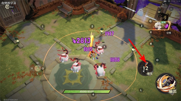 4、根据红色箭头的指示,点击爆发类技能按钮,就能释放高伤害技能来快速清除敌人。
