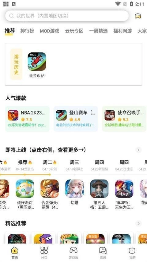 1、进入这款软件,在首页可以看到很多爆款游戏;