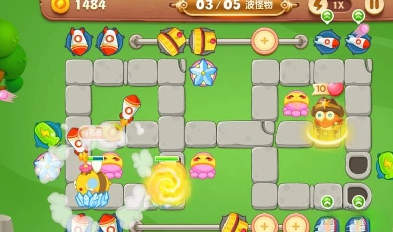 18这里有18座造型各异的防御塔,像鱼刺塔、太阳花、便便塔、船锚塔……还有更多新奇的种类,等着你来一一发现和探索~