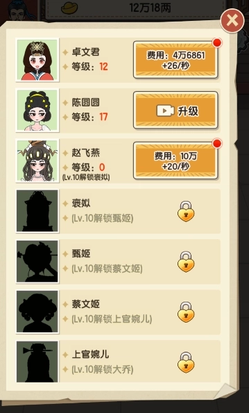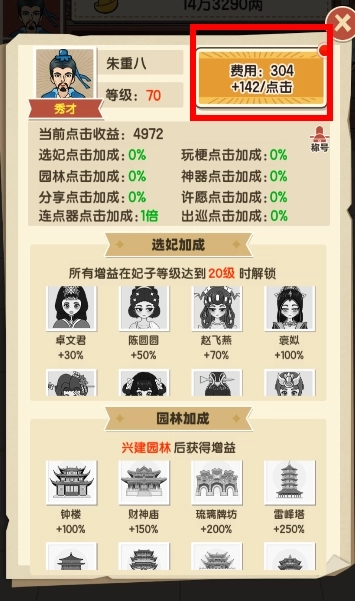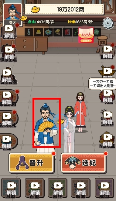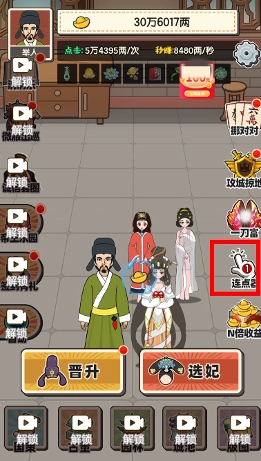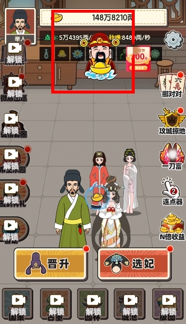 3、解锁选妃,更多妃子提高你的元宝收益。