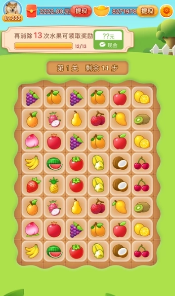 1、经典的水果三消玩法,匹配水果就能拿到红包,把所有水果都消除掉能获取更多红包,记得解锁关卡并完成三消挑战来赚点零花钱。