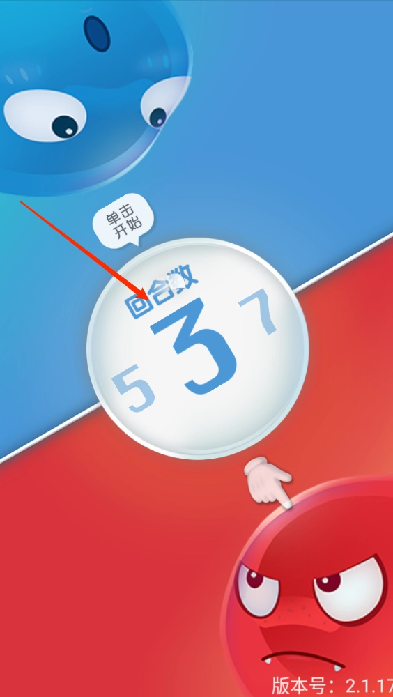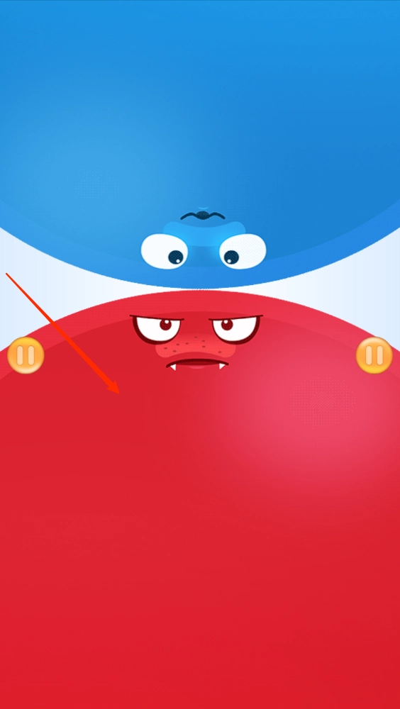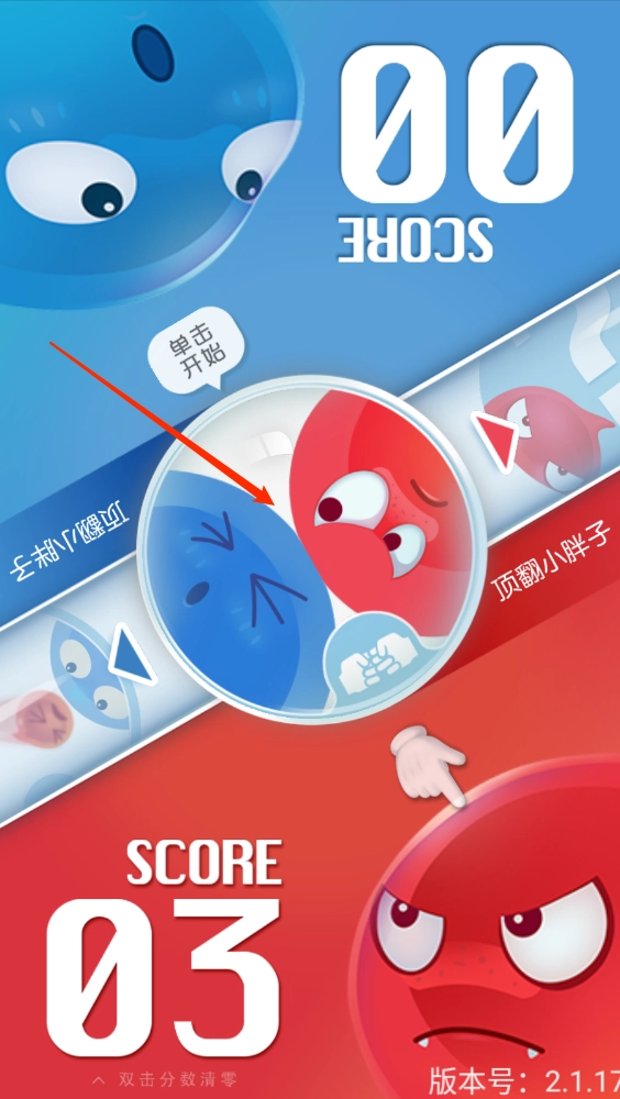 1、这是一款以双人模式为基础的游戏,其中一方玩家操控红色的胖子角色,另一方则操控蓝色的胖子角色,只需点击画面中间的圆圈就能开启游戏。