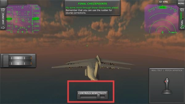 3、可以通过调整【CONTROLS-SENSITIVITY】参数来优化操控手感,这样能更精准地操控飞机穿越检查点。